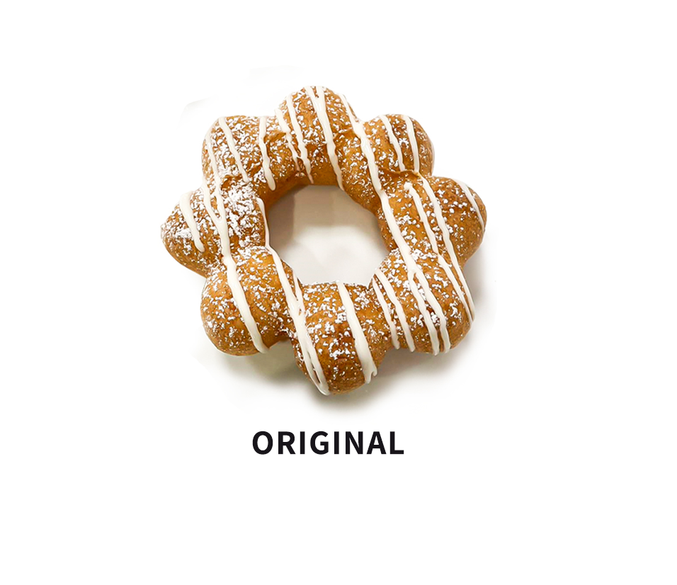 After much trial and error, we developed a low sweetness donut that is still sweet enough for health-conscious parents to feed their kids with less guilt. We also put much effort into creating a taste that is not irritating for the elderly, accustomed to regular donuts.